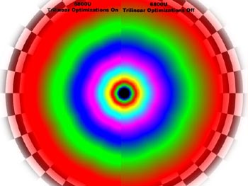 Mit dem NV40 bzw. der 4 im Codename startet eine neue Grafikgeneration. Der NV40 beinhaltet natürlich auch eine Reihe interessanter Features und Neuerungen, die es in dieser Form in aktuellen GPUs noch nicht zu sehen gab. So führt man mit der NV4x Generation die CineFX Engine 3.0 ein, welche unter anderem UltraShadow II, Intellisample 3.0 und das neue Shader-Model der dritten Generation enthält. Aber man hat auch ganz "banale" Dinge integriert, die durchaus Sinn machen. Da wäre zum Beispiel ein neuer Anisotropic-Filtering Modus, welcher die Texturen nun mit 16-facher Stärke bearbeitet. Neu dabei ist auch die so genannte "Trilinear Optimization", welche eben zur Optimierung der Darstellung des Trilinearen Filters dient. Hierzu haben unsere Kollegen von [H]ardOCP eine nette Grafik erstellt.