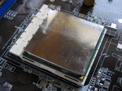 Ist die richtige Passform gefunden, sollte vor der Montage des Kühlers das Liquid MetalPad an seine korrekte Position gebracht werden. Anschließend folgt der so genannte Burn-In Vorgang, der zwischen Prozessor (Heatspreader) und Kühler die richtige Verbindung herstellen soll, damit ein optimaler Wärmetransfer stattfinden kann. Das Liquid MetalPad muss dazu auf eine Temperatur von 58° Celcius erhitzt werden, da es sich ab dieser Temperatur verflüssigt. In unserem Fall konnten wir dank Zalman Fanmate die Lüfterdrehzahl drosseln und den Temperaturverlauf unter Last (z.B. mit Prime95) beobachten. Abhängig von der Genauigkeit der Temperatursensoren, kann man ab circa 58° Celcius eine abfallende Temperatur feststellen. Dies ist das Indiz, dass die Installation erfolgreich war. Sollte keine Hardware-Lüftsteuerung vorhanden sein, helfen Software-Tools wie SpeedFan weiter. Weitere Informationen dazu gibt es bei Coollaboratory.