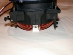 Installiert wird der CNPS 5700D-CU mit 2 Haken die sich schon am Oberbau des Kühlers befinden. Zuerst muss der Kühler an einer Seite eingehängt und dann nach unten abgesetzt werden. Danach können die auf dem unteren Bild zu sehenden 2 schwarzen Kunststoffhaken nach unten geschoben werden. Nach dieser Montage sitzt der 500 Gramm (mit Lüfter) schwere Kühler durch das Rentention-Modul perfekt auf der CPU. Allerdings sollte man erwähnen, dass Intel das maximale Gewicht eines Kühlers mit 450 Gramm angibt. Somit empfiehlt auch Zalman vor allem bei einem Transport Vorsicht walten zu lassen, allerdings befindet sich das Gewicht des Kühlers noch in einem zu verantwortenden Rahmen...