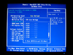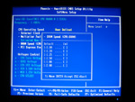 Neben den üblichen Features eines BIOS, wie zum Beispiel das Steuern der Onboard-Komponenten, waren wir natürlich sehr an den Tuning-Möglichkeiten interessiert. Das IP35-BIOS (Version: 24/05/2007) hält hierfür den Menüpunkt "SoftMenu Setup" bereit, das einige Detaileinstellungen erlaubt. Das Menü spaltet sich wesentlich in zwei Unterpunkte (CPU Operating Speed und Voltages Control) auf, die sich manuell steuern oder wahlweise vom System automatisieren lassen. Seitens der Frequenz des Prozessors hat der Benutzer die Möglichkeit den Front Side Bus in 1 MHz-Schritten von 200 bis 600 MHz präzise zu regulieren, den Takt der PCI Express Anschlüsse zu steuern (100 bis 200 MHz, 1 MHz-Schritte) und hat Zugriff auf verschiedene FSB:DRAM-Teiler: 1,00/1,20/1,25/1,50/1,66/2,00. Passend zum Thema Speicher lassen sich auch die Timings der verbauten DDR2-DIMMs manuell konfigurieren. Hierfür steht das Menü "Advanced Chipset Features" zur Verfügung. Lediglich die Command Rate wird automatisch durch das Speicher-SPD übernommen und kann nicht separat gesteuert werden. Als geringste CAS-Latency kann man lediglich 4 Taktzyklen wählen. Hier fehlt unserer Meinung nach klar die Option "3", was aktuelle DDR2-Module bestimmter Hersteller im 400 MHz-Betrieb bereits ohne Schwierigkeiten absolvieren können (siehe OCZ DDR2-1150 Reaper HPC Edition Review).