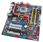 Wie beim "Dark Raider" von Abit, haben wir natürlich auch dem P5K Premium bzw. dessen BIOS (Version: 0204) genau auf den Zahn gefühlt. Speziell haben wir unser Hauptaugenmerk auf Features und Funktionen hinsichtlich des Overclocking gelegt und daraufhin untersucht. Der von Asus bereits in der Vergangenheit forcierte Menüpunkt "JumperFree Configuration" tummelt sich auch beim P5K Premium und hält alle wesentlichen Konfigurationsmöglichkeiten für uns bereit. Neben dem automatisierten Systemtuning in verschiedenen Stufen (Auto/Standard/N.O.S.) mittels "Ai Overclocking", konzentrierten wir uns auf die manuell möglichen Settings. Asus hält hier wie erwartet eine ganze Reihe passender Funktionen bereit. Neben der präzisen der Regelung des Multiplikators (FID) ist auch eine freie Justage des Front Side Bus von 200 bis 800 MHz ohne weiteres möglich. Mithilfe der Punkte "FSB Strap to North Bridge" und "DRAM Frequency" lässt sich die optimale Performance seitens der Speichermodule erreichen. Übrigens: Asus unterstützt offiziell DDR2-1066 und führt dies auch in der Liste auf. Zuguterletzt hat der User auch Einfluss auf die Frequenz der PEG-Slots, welche von 100 bis 150 MHz in 1 MHz-Schritten eingestellt werden kann. Positiv möchten wir außerdem noch das Setup der Command Rate erwähnen, was man leider nicht bei allen Boards vorfindet (siehe bspw. IP35).