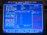 So lässt sich die Frequenz des Front Side Bus von 100 bis 700 MHz in 1 MHz-Schritten präzise regulieren. Des Weiteren hat der User die Möglichkeit den PCI Express Takt von 90 bis 150 MHz zu steuern. Für den DDR2/DDR3-Speicher hält man verschiedene FSB:DRAM-Teiler (maximal DDR2/3-1066 bei 266 MHz FSB) bereit und auch die Timings können im Feintuning optimiert werden. Lediglich die Command Rate wird automatisch durch das Speicher-SPD übernommen und kann nicht separat gesteuert werden, weder bei DDR2, noch bei DDR3. Um an die Settings für die Timings zu gelangen, muss man im BIOS-Hauptmenü die Tastenkombination Strg+F1 betätigen, um die "versteckten" Möglichkeiten für den Power-User freizuschalten.