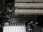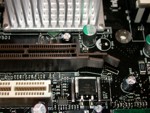 Für die Grafik-Enthusiasten sei gesagt, dass das Mainboard mit einem 8x AGP Port ausgerüstet ist, der auch für die kommenden Grafikkarten ausreichen wird. Aufgefallen ist uns dabei der besonders eigenartige "verbiegbare" Kartenhalter, bei dem wir es uns einfach nicht verkneifen konnten selbigen hier zu erwähnen...