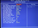 Außerhalb des Abit EQ Menüs, gibt sich das Bios in gewöhnlichem Blau mit dem bekannten Aufbau. Wie auch schon bei EPoX, lässt das Abit keine schärferen Speichertimings als 3-2-2-4 zu, diese liefen dafür aber durchweg stabil und ohne Probleme. Generell hätten wir jedoch von einem Board wie dem Abit Fatal1ty AA8XE auch die Möglichkeit von CAS Latency Werten unterhalb von 3 Zyklen erwartet.