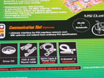 Der Lieferumfang des K8T Neo2-FIR von Hersteller MSI macht einen durchweg souveränen Eindruck und beinhaltet alle nötigen Komponenten. So findet man neben einem ausführlichen Handbuch, einer Diskette mit Serial-ATA RAID Treibern und einer CD-ROM (Treiber und Tools), auch jede Menge Kabel. Zu diesen Kabeln zählen wir ein Rounded IDE-Kabel (optische Laufwerke und Festplatten), ein Rounded FDD-Kabel und diverse Kabel für Serial-ATA Geräte - 1x Strom-Adapter und 2x Anschluss-Kabel. Ansonsten hat MSI dem Paket noch ein ATX-I/O-Shield und die D-Bracket 2 Blende beigelegt, welches vier in ein Slotblech integrierte LEDs zur Diagnose des Bootvorganges und USB 2.0 Ports nach außen legt. Optional kann man zudem noch das MSI Dual-Net Set erwerben, welches den PC um WLAN und Bluetooth Funktionalität erweitert. Insgesamt ein durchschnittlicher Lieferumfang, der gerne etwas üppiger hätte ausfallen dürfen.