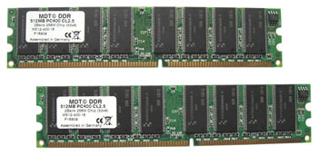 Für etwa 70 Euro bekommt man die beiden Dual-Rank-Module von MDT. Für die Single-Rank Version muss man im Schnitt etwa 5 Prozent mehr hinlegen. Es ist somit neben den Infineon-Riegeln das günstigste DIMM-Kit in unserem Testfeld. Die Erwartungen waren entsprechend niedrig gesteckt. Immerhin laufen die Module noch bei 225 MHz HTT-Frequenz mit Timings von 2,5-3-3-5. Für den normalen Anwender also mehr als ausreichend. Die Leistungswerte in diesem Bereich sind im Rahmen von Messungenaugkeiten mit der (teureren) Konkurrenz vergleichbar. Die Unterschiede, die eine CAS Latency von 2,5 Taktzyklen bei 200 MHz gegenüber einem Parameter von 2 Taktzyklen (siehe Werte von CL2-Kits) ausmacht, sind marginal und im Praxisbetrieb nicht spürbar..