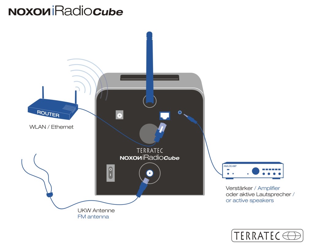 Die Inbetriebnahme des NOXON ist eine denkbar einfache Sache, denn die Bedienungsanleitung klärt über alle nötigen Schritte ausreichend auf. Zunächst muss das Gerät natürlich eingerichtet und ins Netzwerk eingebunden werden. Nach dem Aufstellen muss die rückseitige WLAN-Antenne angebracht und das Netzteil in die entsprechende Buchse eingesteckt werden. Bindet man das Gerät über die Ethernet-Schnittstelle ein, kann man sich die WLAN-Antenne natürlich sparen. Auf der Rückseite befindet sich der Ein- / Aus-Schalter, der das Gerät nicht nur in den Standby-Modus versetzt, sondern komplett abschaltet. Nach der Betätigung des Netzschalters muss man einige Sekunden warten, bis sich das Gerät betriebsbereit meldet, aber das ist beim NOXON laut TerraTec völlig normal.