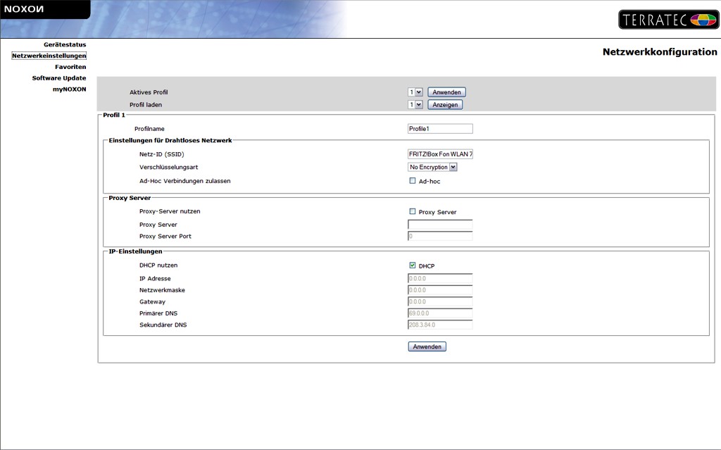 Ebenfalls recht einfach gestaltet sich das Update der geräteeigenen Firmware. Aktuell wird die Firmware-Version 36.6908 angeboten. Um das Update durchführen zu können, sind zwei Schritte nötig: Zunächst muss man sich das entsprechende Update über den FTP-Server bei TerraTec herunterladen. Das ist etwas missverständlich gemacht, denn dem Anwender wird zunächst nicht klar, dass die aktuelle Firmware dort zu finden ist. Zitat: „Für Produkte welche nicht mehr in der Auswahl verfügbar sind, erhalten Sie die Treiber/Software nur noch über unseren FTP-Server“. Dabei wird mittels Link auf den Server verwiesen. Hier finden sich dann im entsprechenden NOXON-Verzeichnis die aktuellen Dateien. Das ist etwas umständlich, denn direkt über die NOXON-Produktseite lässt sich die Firmware nicht downloaden. Die Firmware-Datei steht als ZIP-Download zur Verfügung und muss nun nur noch an der entsprechenden Stelle gespeichert und entpackt werden.