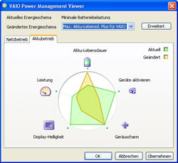 Der Hersteller verspricht eine Akkulaufzeit von über 6 Stunden im so genannten Stamina-Modus. Ist dieser aktiviert, verwendet das Notebook den Grafikchip GMA 950 und das integrierte CD/DVD-Laufwerk, Audio und Modem sowie die Netzwerkverbindungen werden deaktiviert. Außerdem schalten sich die Festplatte sowie das Display bei Leerlauf nach kurzer Zeit ab. Die Helligkeit des Displays lässt zwar bei dieser Stufe zu wünschen übrig, arbeiten lässt sich damit aber dennoch. Bei uns hielt das Notebook sogar länger als 6 Stunden durch. Der Lüfter läuft ebenfalls nur sehr leise im Hintergrund. Glückwunsch an Sony für diese beeindruckende Leistung bzw. Akkuleistung im Stamina-Modus.