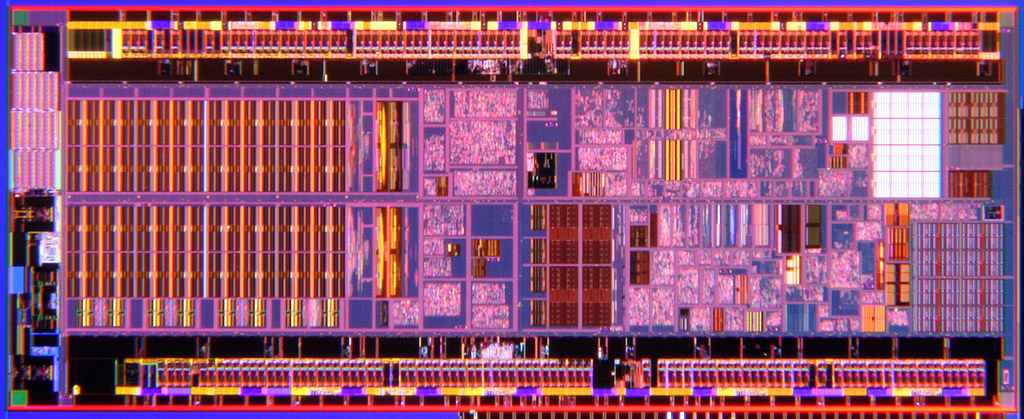 DIE-Shot des nur 25 mm² messenden 45 nm Intel Silverthorne Prozessors.