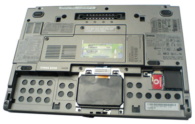 Das Dell Latitude D420 von seiner Rückseite.