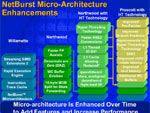 Mit dem Prescott hat Intel einige neue Verbesserungen eingebracht, beginnen wir hierbei bei dem von Intel erneut verbesserten Prefetch und Branch Predictor (Sprungvorhersage): Das schon seit längerem immer wieder verbesserte Feature wurde scheinbar nennenswert überholt und soll den Befehlsnachschub zur Recheneinheit steigern bzw. aufrecht erhalten, um schon vor dem Beendigen des Arbeitszyklus die Daten bereitzustellen, die am wahrscheinlichsten als nächstes benötigt werden. Dadurch kann eine größere Befehlsmenge abgearbeitet werden. Nötig wird das, da der Prescott eine nochmals um 11 Stufen erweiterte Pipeline bekam, die schon bei den Vorgängern eigentlich zu lang war, um ein effektives Takt/Leistungs-Verhältnis herzustellen. Die jetzt mit 31 Stufen extrem lange Pipeline bedeutet, dass der Takt zwar sehr leicht erhöht werden kann und auch sehr hohe Taktraten ohne Probleme fahrbar sind, doch werden die ersten Prescott Prozessoren mit 2,8 GHz und 3,0 GHz wohl mit den alten Northwood-Vorgängern zu kämpfen haben. Vor allem wenn keine Unterstützung der neuen Befehlserweiterungen besteht. Mehr zu den Benchmarks im Laufe des Artikels.