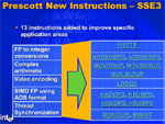 Die SSE3-Erweiterung beinhaltet 13 neue SIMD-Befehle die im Wesentlichen für die Handhabung großer Zahlenketten oder Fließkommaberechnungen von Vorteil sind. Daher wird die Anwendung von vielen SSE3 Befehlen nur für Video- und Audiocodierung und Renderanwendungen interessant. Wobei ohne Unterstützung seitens der Programme - wie bei Befehlssätzen üblich - kein Leistungsgewinn zu erwarten ist. Zum Beispiel dient FISTTP dazu, Umwandlungen vom Datentyp Float (Fließkommadatentyp) in Integer (Ganzzahlig) durch Truncation schneller durchführen zu können.