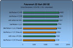In 3D Mark 2001 SE (Angaben in Punkten) zeigt sich weiterhin der Pentium 4 EE mit 3,4 und 3,2 GHz an