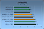 Bei CineBench 2003 (Angaben in Sekunden) entäuschen die Prescott-Modelle. Selbst mit HyperThreading