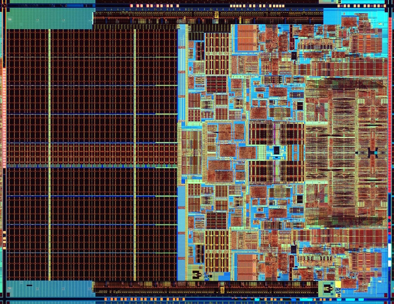 Abschließend zu den technischen Daten ein DIE-Shot eines 65 nm Conroe- bzw. Merom-Kerns.