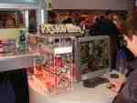 Neben den bereits bekannten Leistungen der neuen NV30 Platinen, suchten wir auch nach lauffähigen GeForce FX 5200 oder 5600 Systemen, doch leider vergeblich. Daher richteten wir uns Hauptaugenmerk auf die verschiedenen Kühlungen der NV30-Platinen. Sehr interessant waren hier die Stände von Gainward, TerraTec, Leadtek und Thermaltake, wobei man die Gainward-Karte mit Wasserkühlung nur im Hinterzimmerchen gezeigt bekam (Bilder unten). Thermaltake setzte wie gewohnt auf seine Heatpipe-Lösung, die offensichtlich auch den NV30 bei Laune halten soll. Ein laufendes System mit der neuen Thermaltake-Kühlung konnten wir leider nirgends finden. Folgend nun ein paar Impressionen der verschiedenen GeForce FX Platinen...