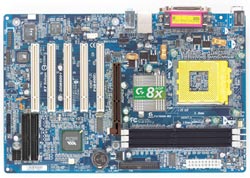 Prinzipiell gibt es natürlich für alle gängigen Sockel Motherboards wie Sand am Meer. Trotzdem wollen wir versuchen einzelne aus der Menge abzuheben und Ihnen hier genauer präsentieren. Beginnen wir mit dem EPoX EP-8RDA6+ Pro (Bild unten links), welches für AMDs Sockel A Prozessoren entwickelt wurde und auf Nvidias nForce 2 Ultra 400 Chipsatz basiert. Die Weiterentwicklung des EP-8RDA3+ Pro ist mit Gigabit-LAN, 6-Kanal Audio Codec mit Digitalausgängen, zwei Serial-ATA Controllern, FireWire und vielem mehr ausgestattet. Hinzu kommt noch der Silicon Image RAID Controller, welcher die Modi 0, 1 und 0+1 ermöglicht. All dies bekommt man bereits zu einem Preis von 90 Euro und hat somit eine solide Plattform für Athlon XP und Sempron CPUs.