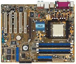 Und zum Schluss wollen wir natürlich auch nicht den Sockel 939 außer Acht lassen und zwei passende Platinen schmackhaft machen. Hier drängt sich besonders ein Exemplar aus dem Hause Asus aus auf, das Asus A8V Deluxe Wireless Edition (Bild links). Das auf VIAs K8T800 Pro basierend Motherboard verfügt neben den üblichen Features (8-Kanal Sound, Gigabit-LAN, FireWire, S-ATA RAID) auch über eine zusätzliche WiFi-PCI-Karte, welche den PC an drahtlose Netzwerke anbindet. Erhältlich ist die Platine bereits ab etwa 105 Euro und konnte uns durch Features und einen recht ansprechenden Preis überzeugen.