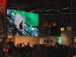 Ohnehin hätte wohl ein Großteil der Besucher sowieso nichts von Doom III und Co. gehabt, da entsprechende Bereiche auf verschiedenen Ständen abgegrenzt wurden und nur für Personen mit einem Mindestalter zugänglich waren. Bevor man also einen solchen Raum betreten durfte, musste man sich ein Armbändchen holen (waren in den Hallen erhältlich). Insgesamt gab es drei verschiedene Bänder (12, 16 oder 18 Jahre alt). Somit konnte man sich Zugang zu den abgesperrten Bereichen verschaffen. Ein Sechszehnjähriger hatte somit absolut keine Chance einen Blick auf ein Spiel zu werfen, welches erst ab einem Alter von 18 erhältlich sein wird. Passend hierzu war auch das Jugendamt Leipzig auf der Messe mit einem Stand vertreten. Im Großen und Ganzen waren wir vom Großteil der gezeigten Spiele nicht sehr angetan, jedoch waren auch einige Leckerbissen dabei, die ein Warten auf jeden Fall wert sind. Als kleines Highlight konnte man auch das Computerspiele-Museum bezeichnen, in welchem man das erste in Deutschland indizierte PC-Game (Flugsimulator in Overkill-Manier), das erste kommerzielle Spiel und vieles mehr bestaunen und auch selbst zocken konnte. Abschließend hier auch noch ein paar Bilder des Xbox Standes mit seiner gigantischen Laser-Wand (etwa 40 m²)...