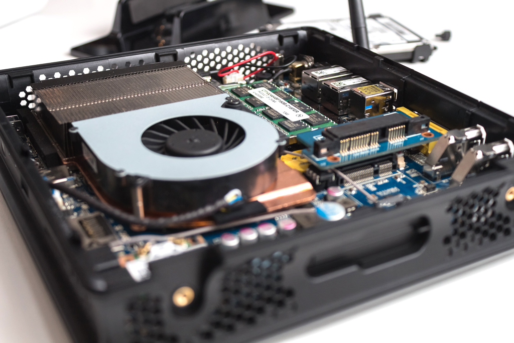 In unserer Plus-Version der ZBOX werden die bisher genannten technischen Eckdaten mithilfe von insgesamt 8 GB DDR3-800 (1 Modul, SPD-Settings 11,0-11-11-28-39) von Hersteller Crucial sowie einer Samsung SpinPoint M8 Festplatte mit 1 TB Speicher ergänzt. Damit bleibt ein SO-DIMM-Sockel noch für Speicher-Erweiterungen frei. Ebenso verfügt die ZBOX zusätzlich über einen nicht verwendeten mSATA-Steckplatz, in dem man beispielsweise eine flinke SSD einsetzen kann.