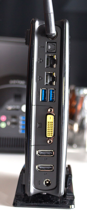 Nach dem ersten Blick auf die technischen Eckdaten der ZBOX EI750 war klar, dass leistungsmäßig einiges zu erwarten war – und wir wurden nicht enttäuscht! Während der Core i7-4770R mit satten 3,2 GHz und bis zu 8 parallelen Threads für einen starken Antrieb in rechenintensiven Anwendungen sorgt, kann die Intel Iris Pro Graphics 5200 auch für Spaß in 3D-Games sorgen. Zwar werden echte Gamer teilweise andere Erwartungen haben, doch im direkten Vergleich nimmt es die Iris-Grafik problemlos mit einer Nvidia GeForce GT 640 oder AMD Radeon HD 7600G auf und bietet DX11.1-Support. In Sachen Leistungsaufnahme gibt es keine Auffälligkeiten und die ZBOX begnügt sich mit etwa 68 Watt unter Volllast. Im lastfreien Idle-Betrieb bleibt der Mini-PC deutlich unterhalb der 20 Watt-Grenze. Im Bereich Geräuschentwicklung herrscht allerdings noch Optimierungsbedarf, da sich der "Smartfan" der CPU-Kühlung unter Belastung mit knapp 43 dB(A) deutlich bemerkbar macht. Mittels BIOS hat der Kunde hier die Möglichkeit selbst die notwendigen Anpassungen nach eigenem Geschmack vorzunehmen. Ggf. sollte man bei ZOTAC über geänderte Default-Werte und entsprechend ein BIOS-Update nachdenken. Positiv hervorheben möchten wir noch das kompakte Gehäuse mit flexiblen Montagemöglichkeiten (VESA-Halterung oder Standfuß) sowie das umfangreiche Schnittstellen-Angebot.